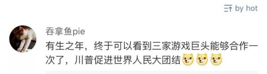 这次微软、任天堂和索尼的罕见同框也引起了广大游戏爱好者的热议,不少人感叹,三大厂的意外联合完全是有生之年系列,游戏界多少年来没做到的事,竟然让特朗普做到了......