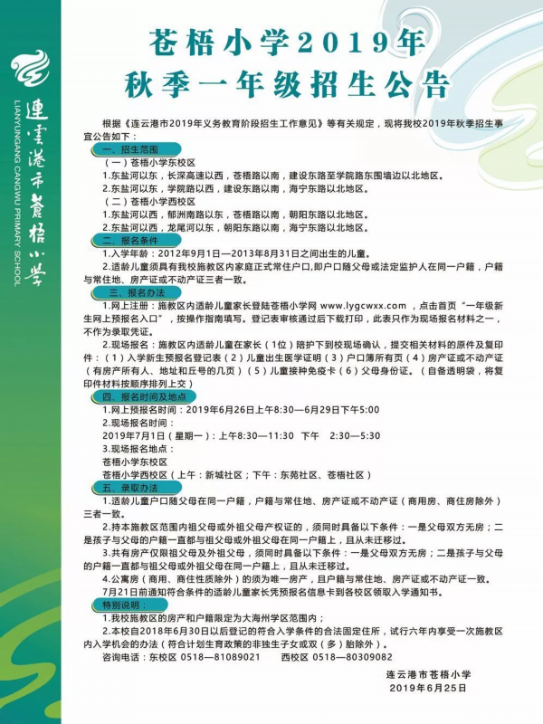 这两天,连云港市各家小学开始发布招生简章,下面是几所学校发布的招生简章,包括报名材料、报名地点、时间等,各位家长关注下吧!!