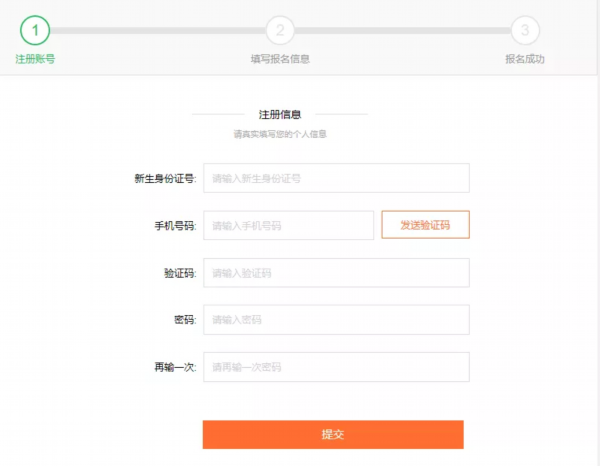 5. 注册完成后,进入报名信息提交界面,根据相应提示填写信息提交。