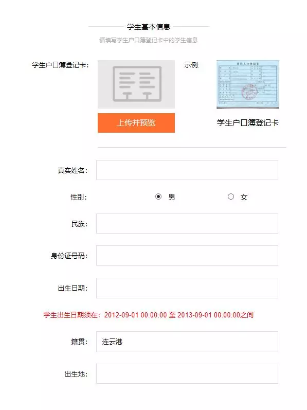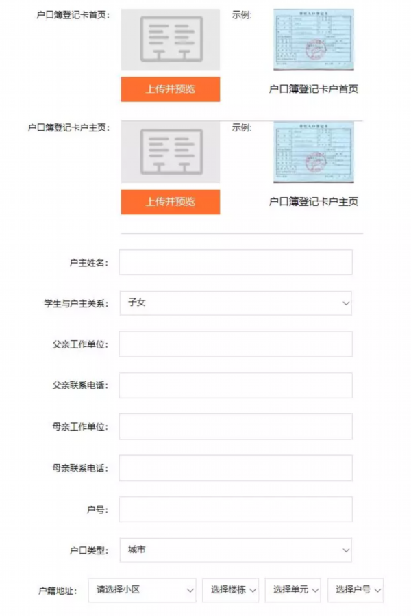 6. 户籍地址只能选择,不能自己填写。如户籍地址在施教范围内却选择不到,请于现场报名时到现场填写报名表。