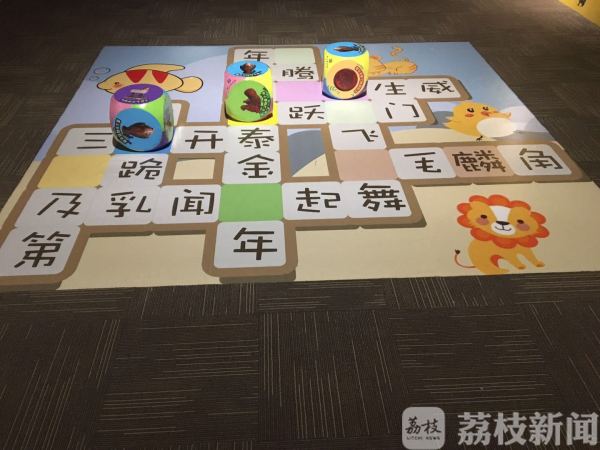 文物与动物结合,让孩子走入自然,通过观察更透彻地了解身边的生态环境,理解动物和人类相生相伴之间的关系。而五大互动装置让小朋友以玩乐的方式巧妙地记住知识。在展览的第三块,地上有一个大型田字格,还有三个印有与动物有关的文物的骰子,通过掷骰子的形式,把横向与纵向的成语联合起来打通关,郑晶说,这可以让成语活起来,方便孩子们学习成语背后的故事。