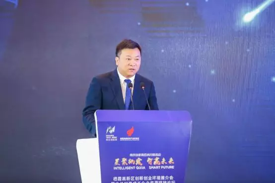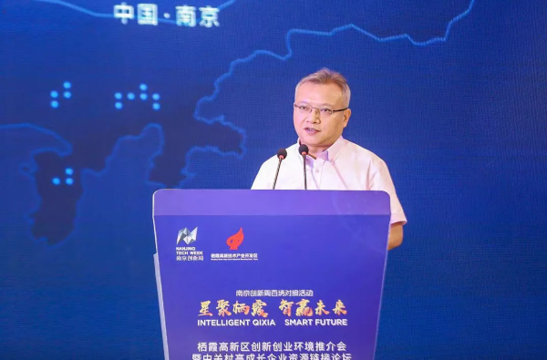 随后,由南京市栖霞区人民政府副区长陆瑞峰致辞。陆瑞峰表示,栖霞区作为南京市新兴产业发展的集聚区,创新创业环境十分优越,营商环境走在全国前列,拥有独具特色的体制机制、得天独厚的人力资源、优势凸显的创新生态、专业成熟的载体空间以及宜居宜业的城市品质。希望通过此次友好的聚会,使各位专家、企业代表关注栖霞、了解栖霞、留在栖霞,进一步深化全面合作,努力实现项目与技术对接、知识与产业结合、技术与市场互动、创业与投资共赢。
