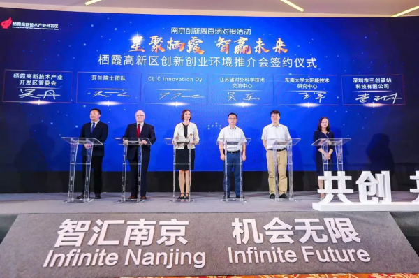 在活动的最后,举行了重大项目签约仪式,芬兰院士团队、CLIC创新公司、江苏省对外科学技术交流中心、东南大学太阳能技术研究中心、投资家网、北京科创梦工厂科技有限公司、南京子谷大数据科技有限公司、南京汉医健康产业有限公司、南京凯普医学检验实验室有限公司、南京栖创科技孵化器管理有限公司等8个项目的代表,与栖霞高新技术产业开发区进行了战略合作签约。栖霞高新区将通过提供高水平、高效率的保障与服务,全力推动战略合作协议全面落实,全力支持企业在高新区加快发展,开创互利共赢、共同发展的美好未来。