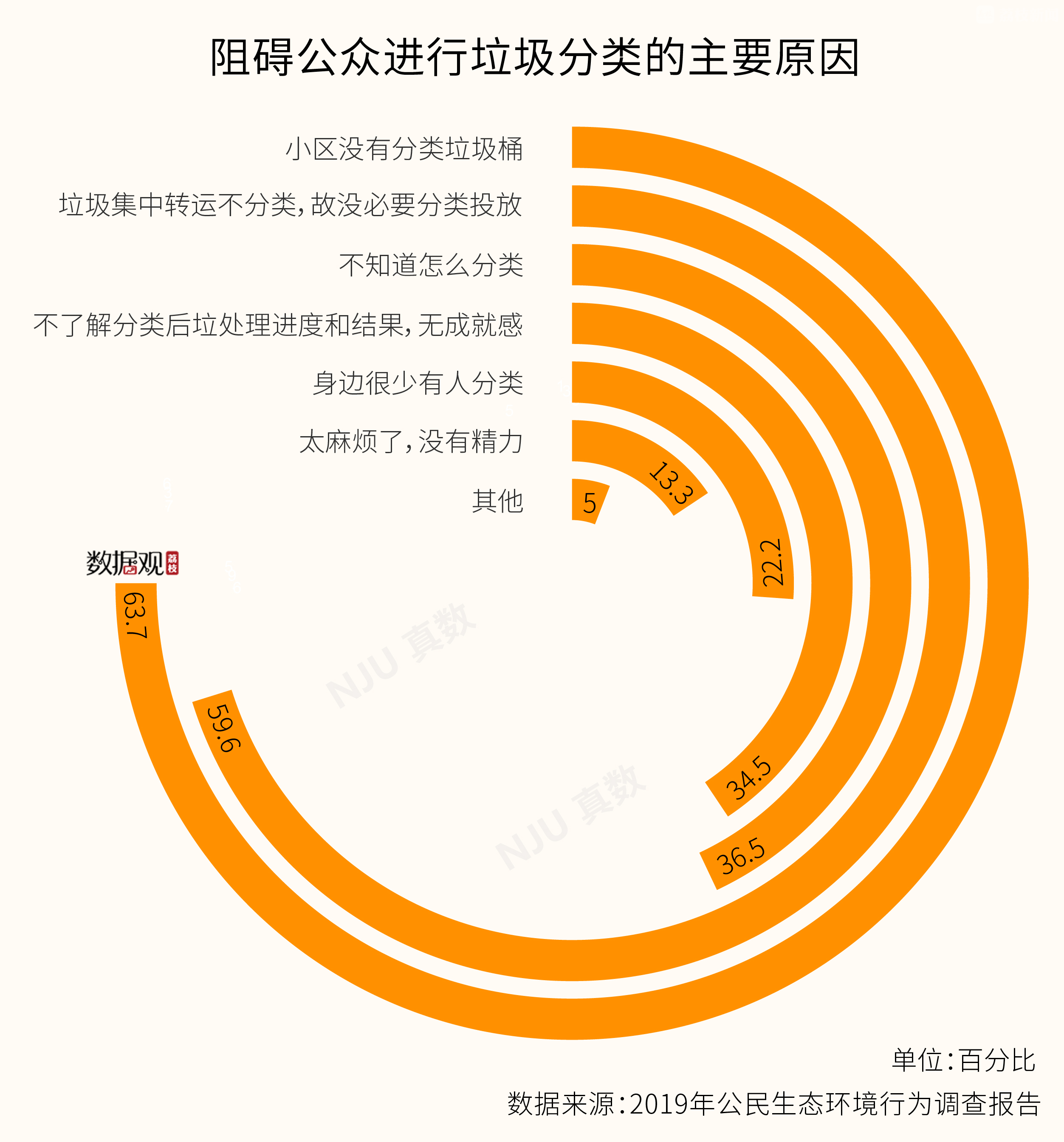 《报告》引用调查数据指出,影响居民进行垃圾分类的主要原因有: