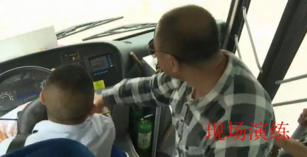 车上一名不法分子抢夺公交车方向盘