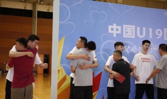 出征仪式上父子拥抱