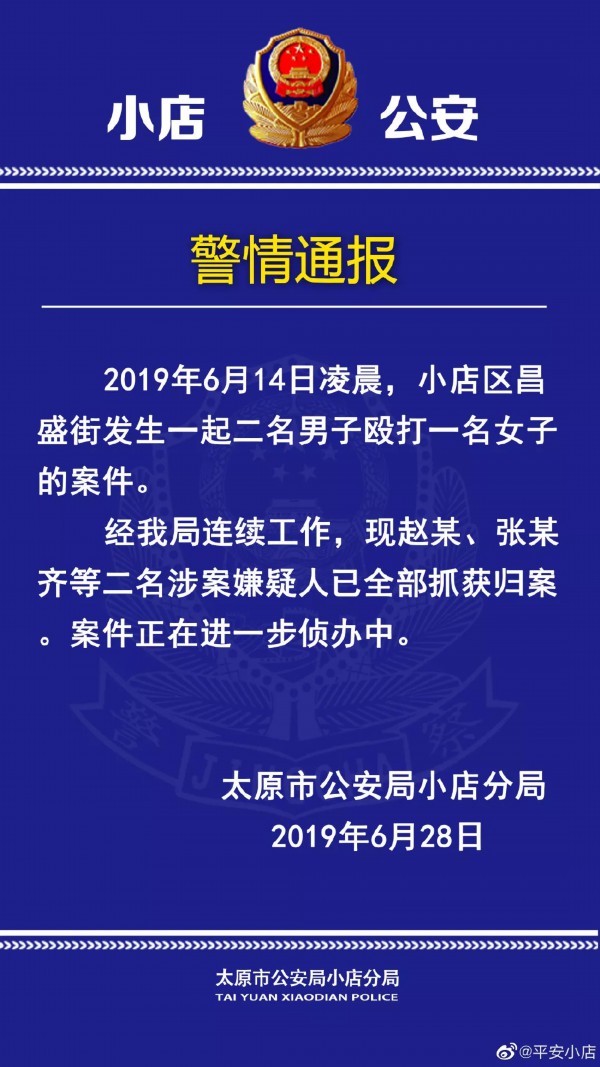 太原市公安局小店分局官方微博@平安小店 6月28日发布警情通报: