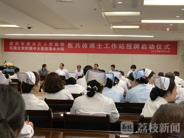 6月29日上午,南京市溧水区人民医院(东南大学附属中大医院溧水分院)举办医共体博士工作站授牌启动仪式,溧水区人民政府王超勇副区长、溧水区卫健委鲁慧荣主任、溧水区人民医院院长嵇振岭等领导,亲自为落户在溧水区永阳街道社区卫生服务中心、白马中心卫生院、晶桥中心卫生院、东屏街道卫生院、石湫中心卫生院、洪蓝街道卫生院等6家基层医疗机构的 12个医学博士工作站揭牌。这一创新举措的实行,标志着作为江苏省医共体试点单位之一的南京市溧水区医共体建设进一步深化、细化。据悉,医共体内同时将12个医学博士工作站的优质医疗资源下沉到乡镇卫生院,这在江苏尚属首次。