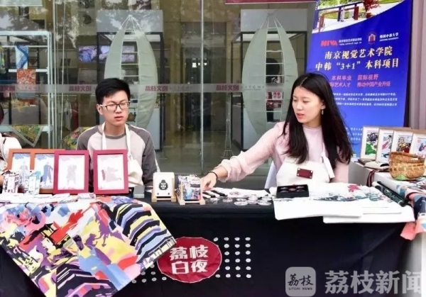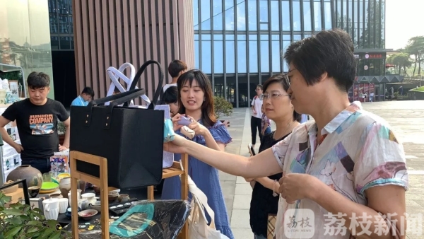 作为江苏高校优秀艺术作品联展系列活动的一部分,市集也有众多专业院校的参与,独具特色的设计品,吸引人群围观和购买。