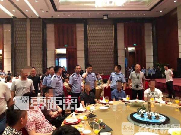 这时,先期到达的侦查民警反馈信息,该团伙在酒店二楼大厅聚会,共31桌,约300余人,是专门为两名刚刚升级为5星的团伙成员过生日而举办的。为确保行动万无一失,警方又调集巡特警及前黄、礼嘉、牛塘三个派出所的部分警力前来支援。
