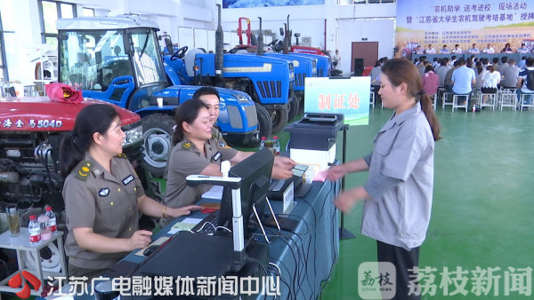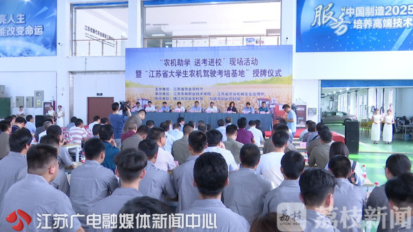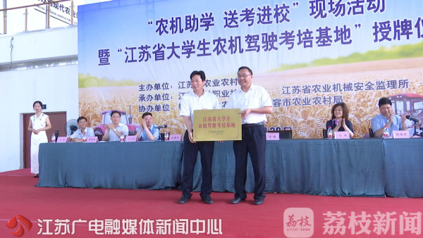 实施乡村振兴,人才队伍是关键。为培养壮大农机后备人才队伍,今年以来,全省农业部门深入调研论证,探索开展"农机助学 送考进校"活动,为大学生考取农机驾驶证提供全方位服务。活动现场," 江苏省大学生农机驾驶考培基地"在江苏农林职业技术学院正式挂牌,这也是全国第一个大学生农机驾驶考培基地。