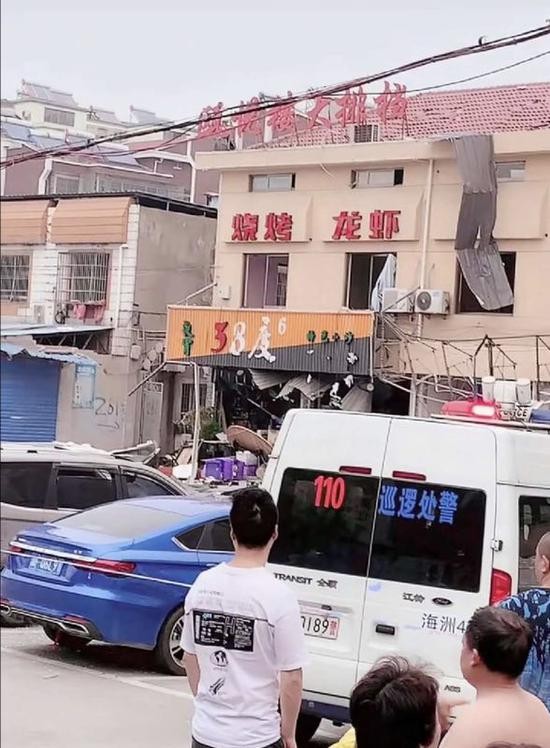 从网友发布的照片来看,受事故影响,事发店铺的门面受到破坏,餐桌、凳椅倒在地面。公安车辆已到现场。