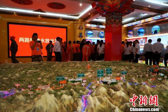 图为西藏阿里青年养路人参观位于拉萨的西藏交通运输厅“两路精神”纪念馆。 钟欣 摄