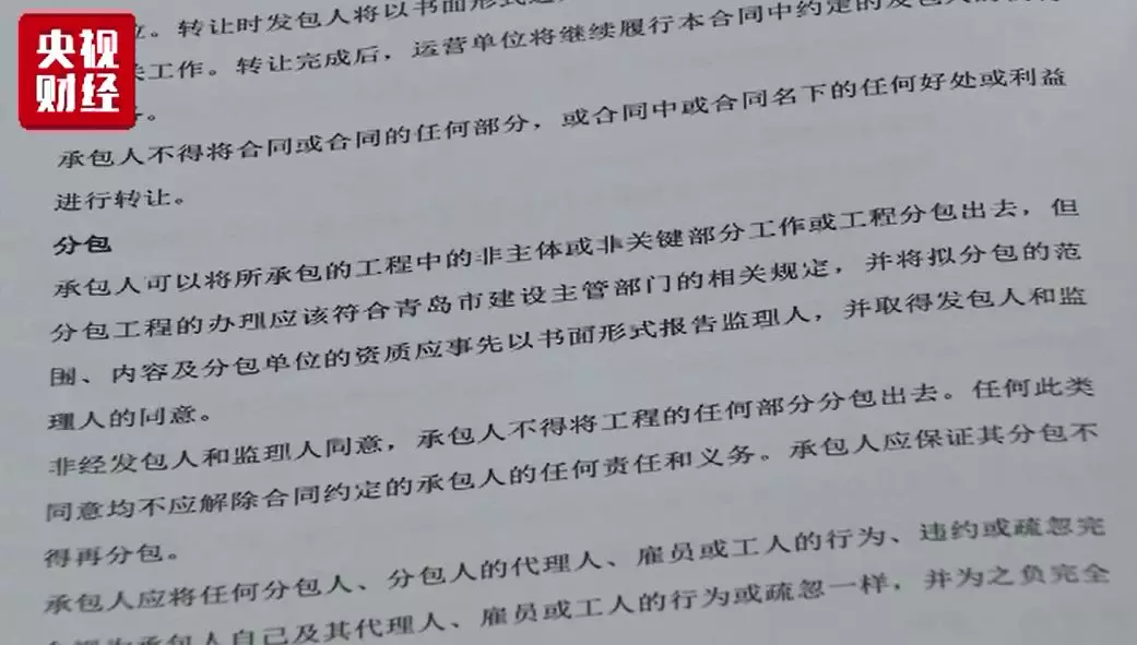 央视财经记者在青岛地铁集团,看到了1号线公司与葛洲坝电力公司的合同文件,其中提到,承包人拟分包的相关事宜需要经过发包人的同意。