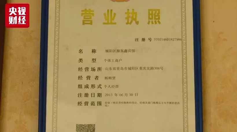 据信息显示,与爆料人刘飞云所在公司直接签署劳务分包合同的青岛顺源达劳务有限公司,注册地址位于青岛市重庆北路308号。然而,这里实际上却是一家名为顺客鑫的宾馆。