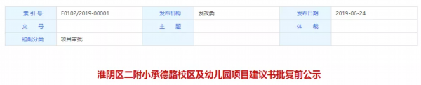 淮阴区二附小承德路校区及幼儿园项目建议书批复前公示
