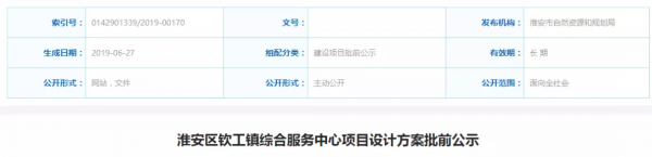 淮安区钦工镇综合服务中心项目设计方案批前公示