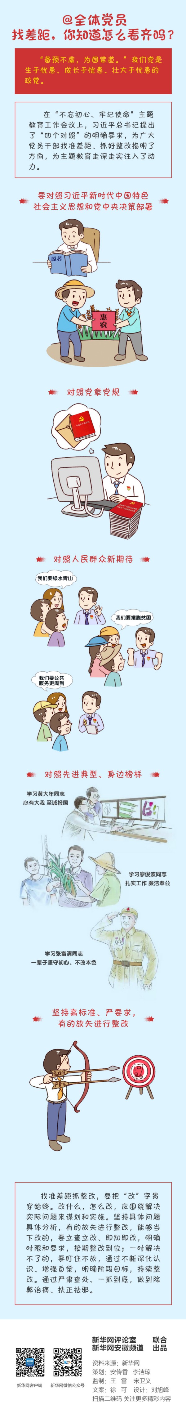 “君子检身,常若有过。”时时反观自身,检视不足,是党员干部应有的修为。不忘初心、牢记使命,关键是要有正视问题的自觉和刀刃向内的勇气。找差距、立标杆,我们要同一切影响党的先进性、弱化党的纯洁性的问题作坚决斗争,努力提升自己的为民意识和服务本领,把党建设得更加坚强有力。