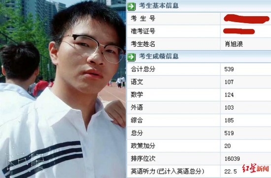这名男子叫肖旭浪,今年19岁,是应届毕业生。他高考总分539分,高出一本线69分。6月25日18时许,肖旭浪的遗体在乌江下游8公里处被发现并打捞上岸。