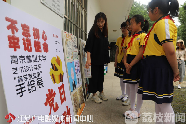 暑假期间,南京林业大学艺术学院走进南京市高淳区桠溪街道顾陇社区开展主题党日活动,用手绘林学家故事传播生态理念的方式向党的生日献礼。