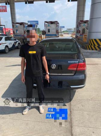 2日15时许,一辆黑色大众小车行驶至G75线兰海高速南宁南收费站广场时,民警发现该车不仅没有悬挂车牌,连临时号牌都没有放置。民警示意驾驶员出示相关证件,并下车接受检查,不料驾驶员董某拿出一张临时号牌称该车为二手车,正在办理手续,目前没有车牌。交警仔细辨别发现临时号牌是广东省的,且临时号牌所载部分信息与该车不符。
