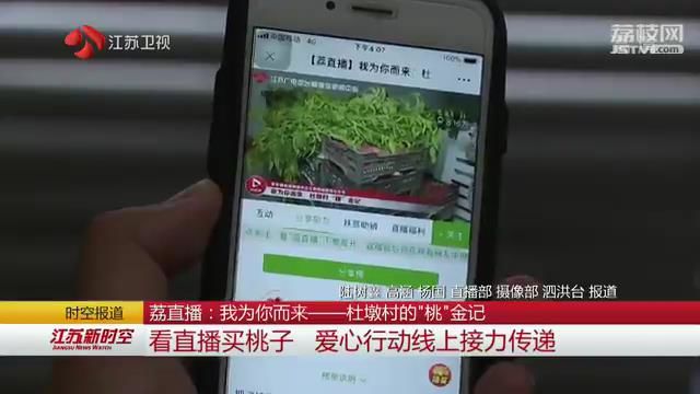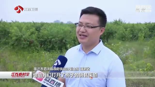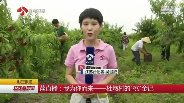 江苏台记者吴迎旋:“今天,我们的扶贫助困系列公益直播——‘我为你而来’的第一站,来到了宿迁市泗洪县界集镇杜墩村,正值初夏,果园合作社里2000多亩的油桃和蟠桃全部成熟了,哇,这个桃子真是甜。这里东临成子湖,西靠徐洪河,属于江苏扶贫开发重点片区之一,全村几十个村民正忙着将红红的桃子从树上采摘下来,然后通过冷链物流,销往全国。”