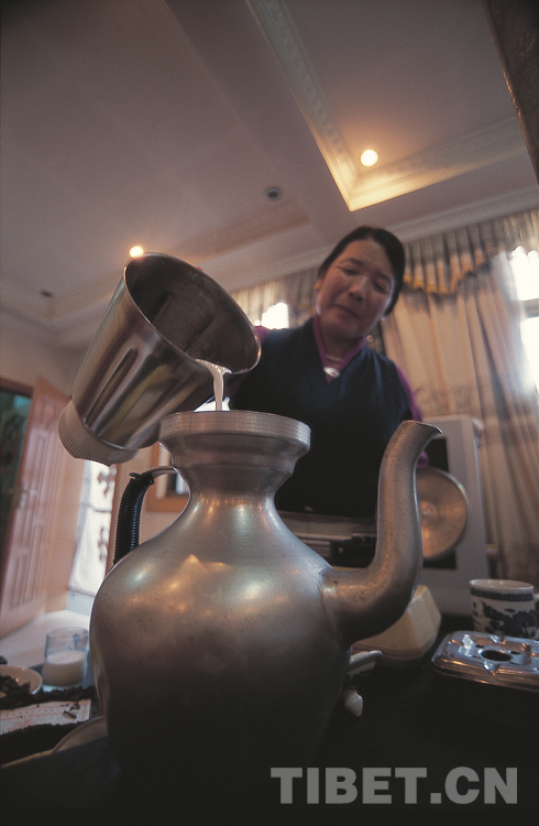 红英是在昌都长大的藏族人,她跟我说起了一段她在内地念大学时的往事。“我去到内地喝不到家乡的酥油茶,整天就想啊想,后来有一次几位藏族同学聚会,发现有人从家带了酥油来,大家如获至宝,兴奋的弄来一些茶叶,准备喝一顿馋了好久的酥油茶。可是,没有茶桶啊!酥油要不断搅拌才能融到茶水里,酥油和茶水融成的混合物再加上盐才能叫“酥油茶”啊!