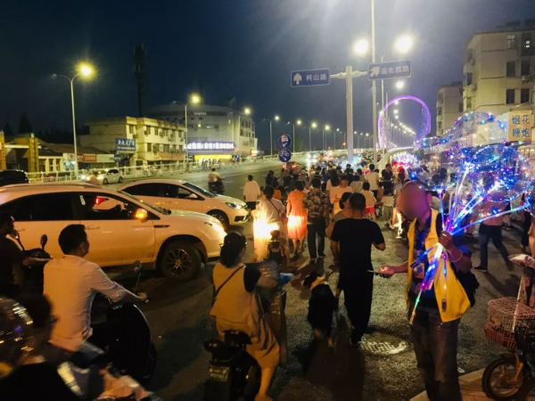 附近居民告诉记者,自从大桥通车以后,每天太阳一落山,就有大批人群前来观赏大桥,这些小摊小贩也“应运而生”。