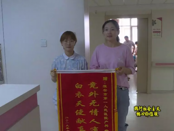 第二天,孩子的家人拿着锦旗来到医院对徐敏表示感谢。