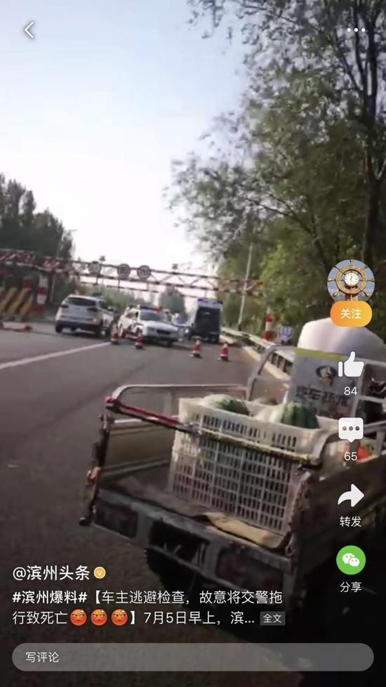 据山东省滨州市交警支队7月6日通报,一车主逃避检查,故意将交警辅警拖行致死亡。