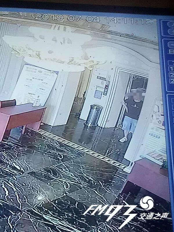 于是,毛先生到酒店查看了当天的监控,监控显示:7月4日下午2:11分,一名穿着黑色T恤,牛仔短裤,戴着眼镜的男子在酒店大堂出现:“他是2:08分进去,2:19分走出酒店,我们仔细看了监控,我女儿被这个男的控制在厕所的时间有六七分钟的样子,我们问了女儿,她说一个陌生的叔叔让她带到酒店的厕所,到达厕所门口,我女儿就被他拉了进去,然后门反锁,被要求摸屁股,还恐吓说如果你跟妈妈说的话,我以后还来找你......”