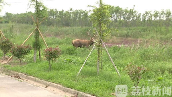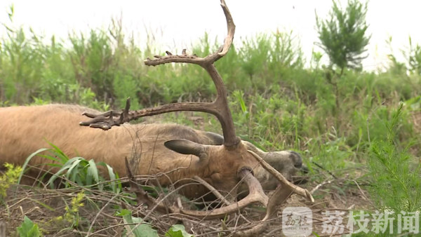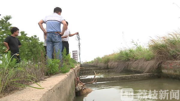 昨天(7月5号)下午,大丰麋鹿国家级自然保护区接到群众报警,在大丰沿海林场排灌渠道中有一头成年野生麋鹿受困,保护区的救助队立即出发赶往现场救援。