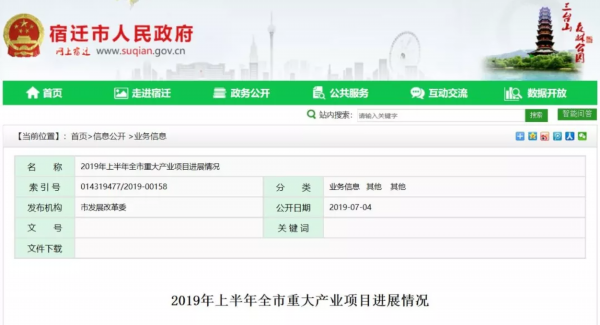 日前,宿迁市发展改革委发布《2019年上半年全市重大产业项目进展情况》,一起来看看你关注的重大项目新进展。