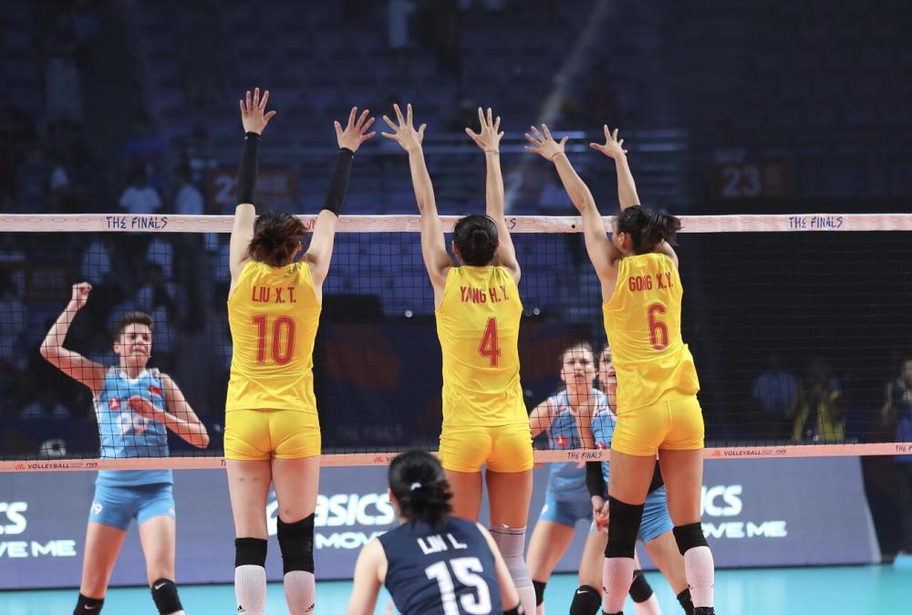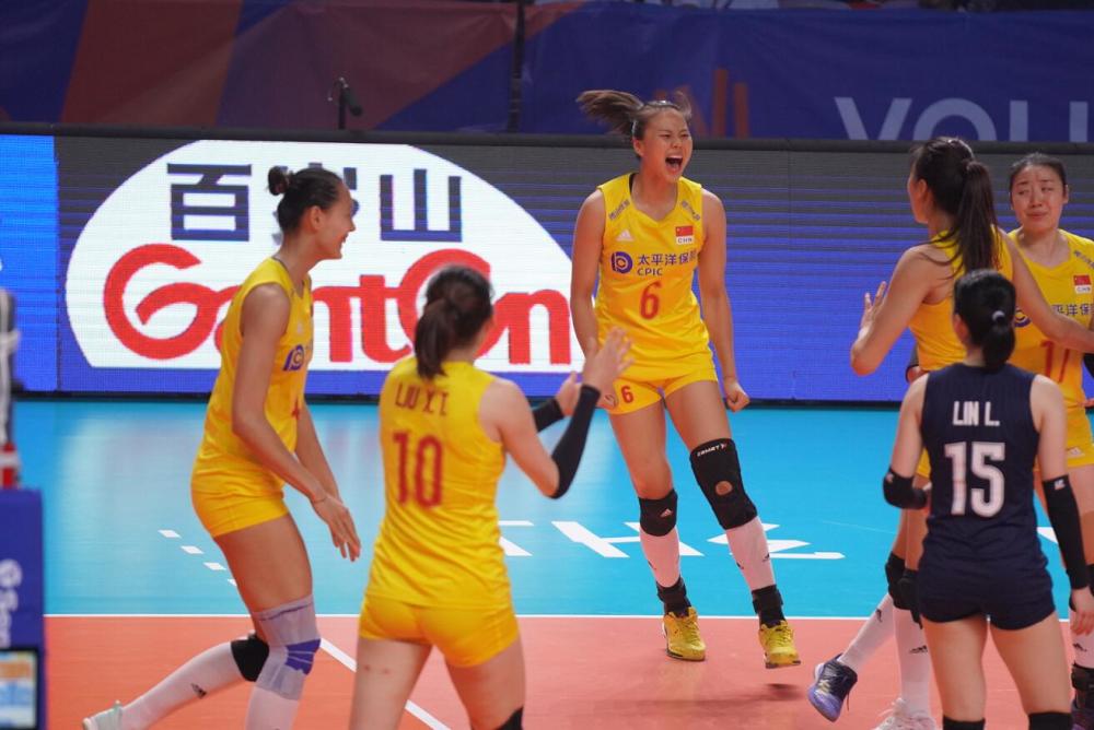 龚翔宇二号位扣中,刘晏含四号位打手出界,龚翔宇和王媛媛双人拦网连得两分,中国队以13-8拉开比分。刘晏含发球直接得分,中国女排以14-8逼迫古德蒂请求暂停。龚翔宇二号位下球,卡拉库尔特后三进攻下网,中国女排以16-11继续领跑。