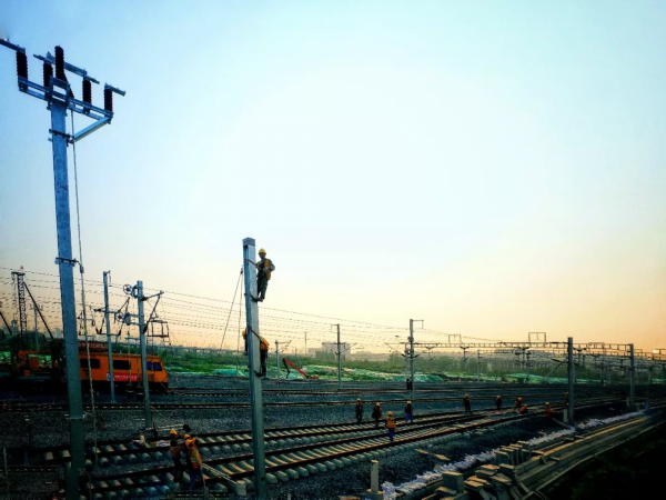 在进行主体建筑的同时,站台雨棚工程也在加快推进。盐城站站台雨棚工程水平投影面积为26678平方米,站场规模为5台12线。