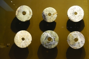 良渚玉,在南博历史馆新石器时期的展区呈现。展厅里,高高低低的玉琮、大大小小的玉璧、玉管、玉钺、玉镯环……让人有一种穿越到5000年前的感觉。