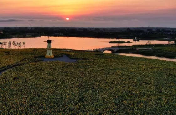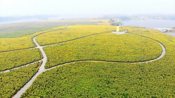 “航拍江苏白马湖畔1500亩向日葵,迎风绽放美不胜收”组图