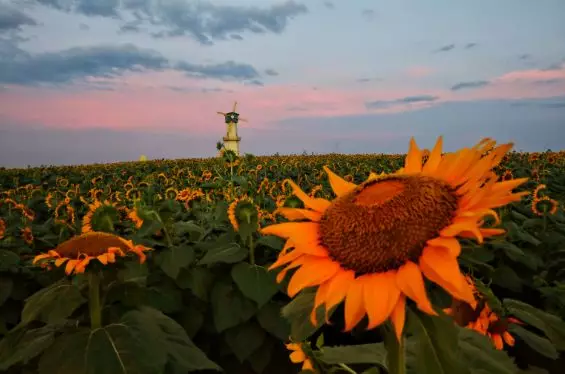 夕阳一刻,向日葵花海分外宁静