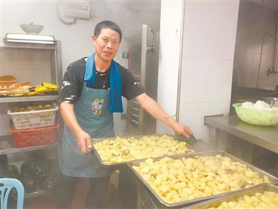 摘菜也是一件力气活,200多人吃饭,一顿饭光土豆就要吃掉差不多60斤,削土豆皮就是一件格外艰巨的任务。“一顿饭差不多要消耗80-100斤米、200斤菜,算下来一天的花费大约1000元,高峰期的时候,每天有300多人前来就餐。”吴淑妹说,平时的食材基本都由义工们从周围几个价格比较便宜的菜市场采购,菜摊老板在得知他们采购的蔬菜用来做饭免费给老人们吃,基本上都以成本价卖蔬菜给他们。