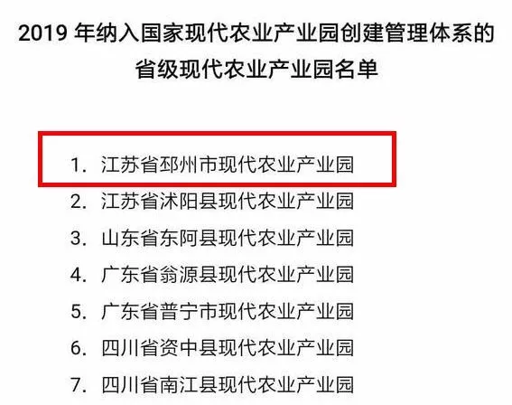 2019年纳入国家现代农业产业园创建管理体系
