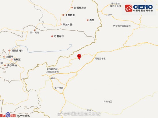 中国地震台网正式测定:07月08日14时36分在新疆克孜勒苏州阿合奇县(北纬40.89度,东经78.71度)发生3.0级地震,震源深度9千米。