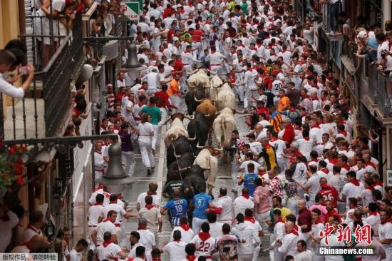据报道,奔牛节活动会持续到这个星期天。潘普罗纳举行的奔牛节活动中,每天会有6头牛被放出来,这些牛会在一条长848米的狭窄街道上,追着人群狂奔。而这也是它们奔向死亡的开始,这6头牛将在同一天举行的斗牛活动中上阵。