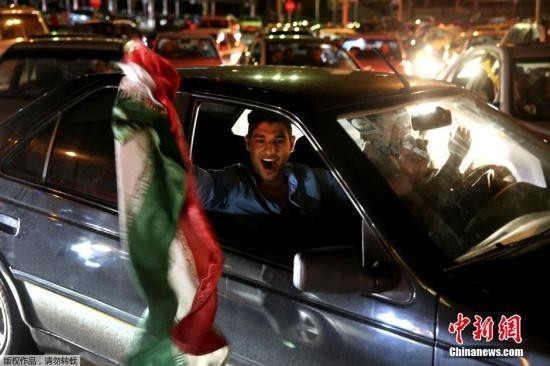 当地时间2015年4月2日,伊朗德黑兰,伊朗人涌入街头狂欢,庆祝伊朗核谈判达成框架性协议。