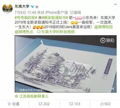 导读近日,东南大学发布了一款“会唱歌”的大学录取通知书。看到这样的通知书,有网友说,想退学重考!