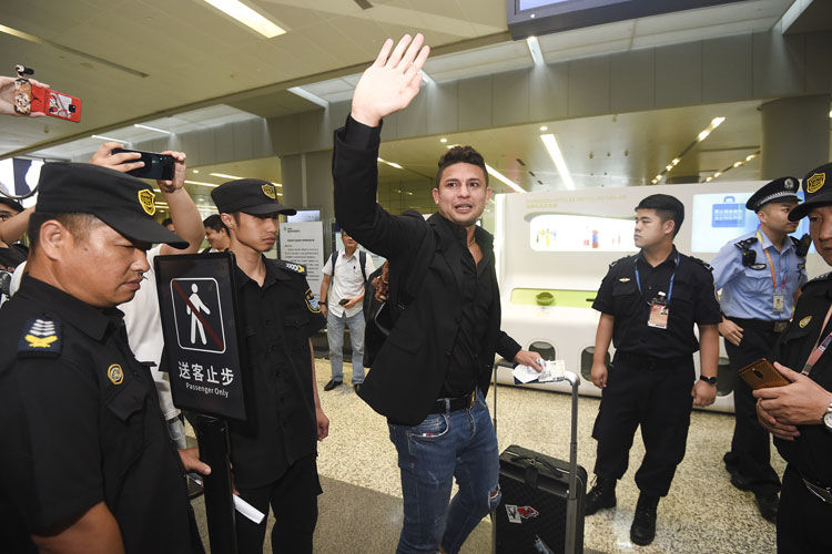 2019年7月8日,上海,埃尔克森现身机场离开上海,上港球迷聚集送别。(图源/视觉中国)