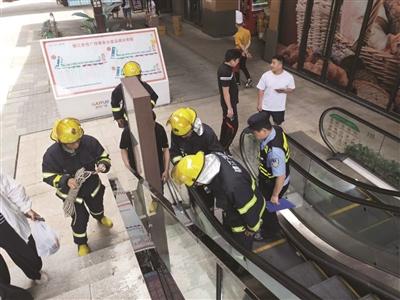 李伟立即关停了该部电动扶梯,并当即联系了商场物业工作人员。李伟原本想将扶梯旁边的挡板掰开救出报警人,但由于挡板层数很多,完全无法徒手移开。无奈之下,李伟请来了辖区消防队员,对扶梯进行破拆。