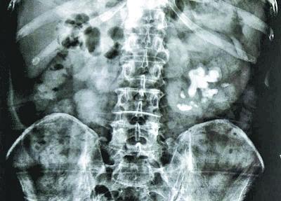 从1994年开始,王先生就因双肾小结石发作,陆续做过体外碎石、开刀取石、输尿管镜取石等治疗,后来不疼不痒就没管。谁知,最近再查右肾已萎缩无功能,而左肾结石竟长到7.2×3.3厘米大,像一朵盛开的白玉兰(见图)。若不及时取出,可能会面临双肾功能丧失,即我们常说的“尿毒症”。