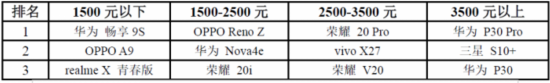 在3500+价位段中,华为P30 Pro在星空银河拍摄场景、高动态范围照片、夜景照片、高倍变焦等方面表现最好;其次是三星S10+和OPPO Reno表现较好,苹果手机拍照整体表现一般。
