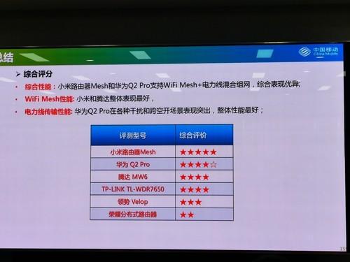 综合性能小米路由器Mesh和华为Q2 Pro支持WiFi Mesh+电力线混合组网,综合表现优异。