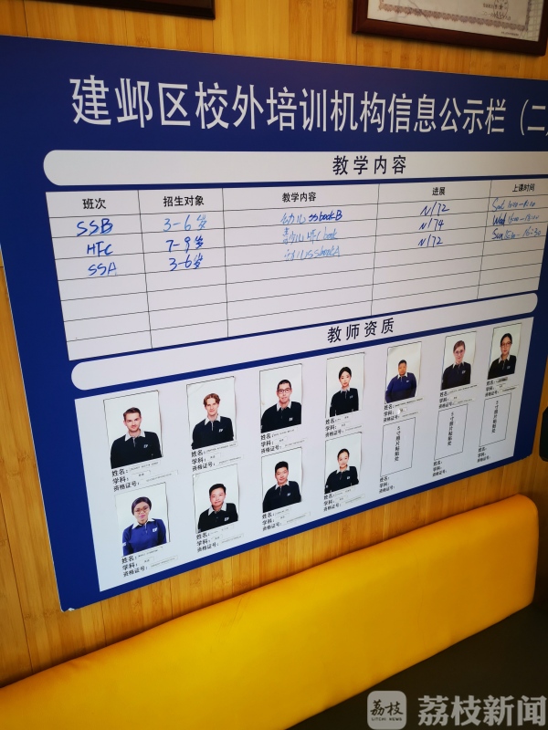 首先,记者来到位于建邺万达广场附近的英孚青少儿英语培训机构。在一进门最醒目的位置,摆放着老师的个人简历,其中列出了外教姓名、所教学科以及资格证号码。一位负责人表示,他们已经得知徐州英孚教育外教涉毒的事情,但与南京的门店关系不大。“我们是一个品牌,在整个中国区,只有北上广是直营店,其他都是一个区域一个加盟商,外教有总部派的也有自己找的。”负责人说。